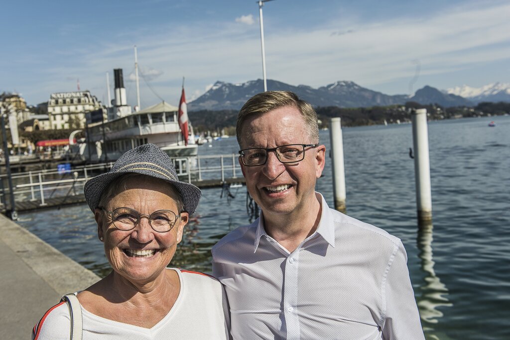 Barbara Wirth und Joe Süess haben am 1. April das Homeoffice früher beendet, um Luzern beim schönen Wetter zu geniessen.